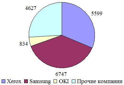 Среди устройств Xerox особой популярностью пользовались чёрно-белые лазерные принтеры формата А3 DocuPrint 3105, среди принтеров Samsung государственные закупщики дали предпочтение модели CLP-415N формата А4, а среди устройств OKI – А3-модель C831dn.