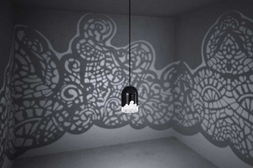 В выключенном состоянии светильники выглядят изысканно. Как только внутри кружевного плена загорается электрическая лампочка, на стенах появляются причудливые узорные тени. Четкость узоров можно регулировать, устанавливая в осветительные приборы лампочки с различной мощностью: более мощные лампочки дают яркие, четкие тени, а слабые лампочки образуют мягкие, размытые узоры.