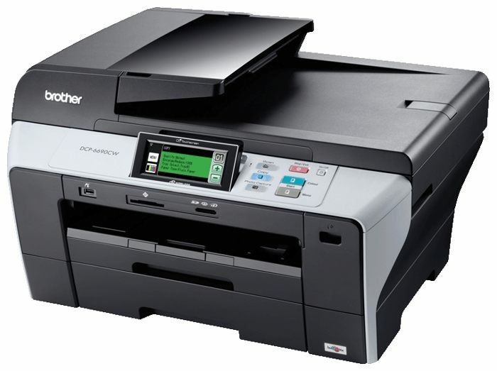 BROTHER DCP-6690CW – это четырехцветный струйный многофункциональный принтер формата А3, объединяющий в себе сразу три устройства: цветной струйный принтер, копировальный аппарат и сканер оснащенный устройством автоподачи оригиналов. Подключение устройства к беспроводной сети осуществляется через Ethernet (RJ-45) или Wi-Fi. Предназначено МФУ BROTHER DCP-6690CW для эксплуатации в малом бизнесе либо в небольших отделах крупных компаний.